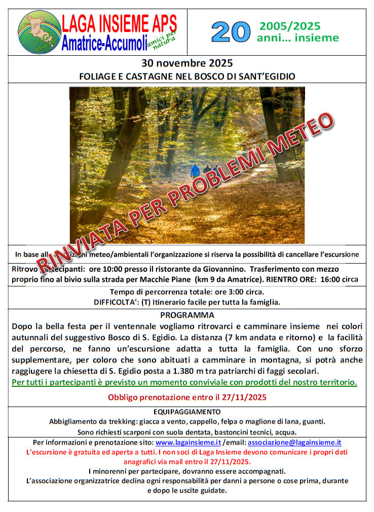Per informazioni e prenotazioni: Sede Laga Insieme APS "Tilesi Paride" - Piazza Cavalieri di Vittorio Veneto